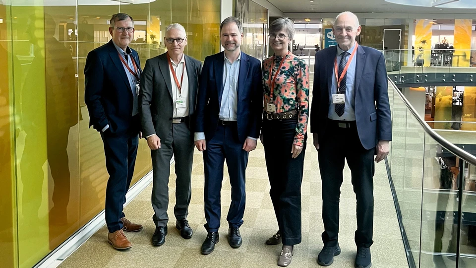 Fra venstre: Hans Østergaard, Borgmester i Ringkøbing-Skjern Kommune, H.C. Østerby, Borgmester i Holstebro Kommune, Nicolai Wammen Finansminister, Dorte West, Borgmester i Herning Kommune og fmd. i Business Region MidtVest og Peder Christian Kirkegaard, Borgmester i Skive Kommune.